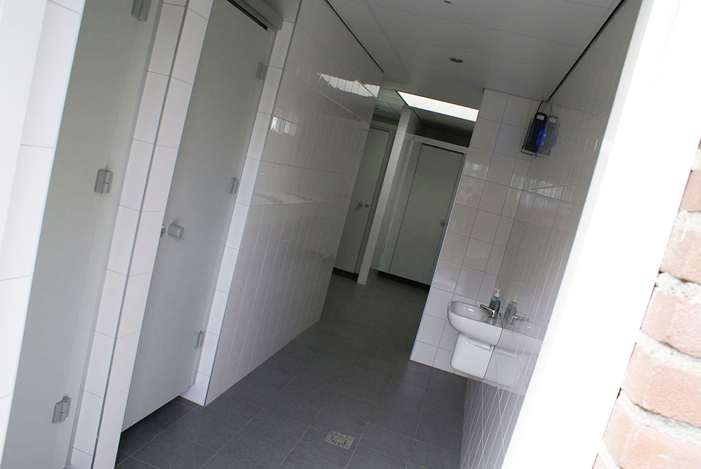 Aparte dames- en herenafdeling met in beide afdelingen het volgende, twee toiletten + wasbakje om de handen te wassen, twee ruime douches, twee ruime wasbakken en 1 afgescheide wasbak.